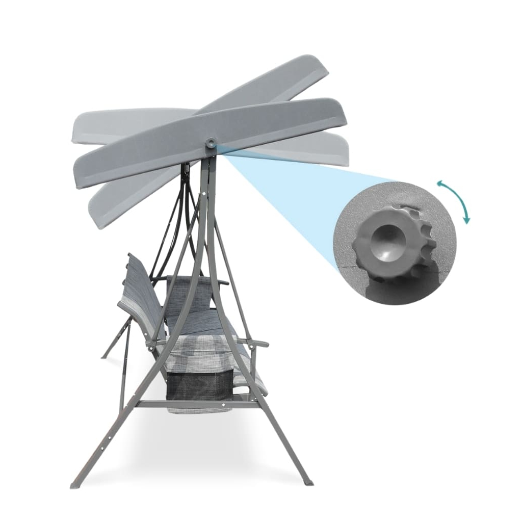 K houpačce patří také látková stříška, která vás ochrání před přímým sluncem. Pomocí knoflíků na stranách můžete upravit její sklon. Tak si pojďte zarelaxovat!
