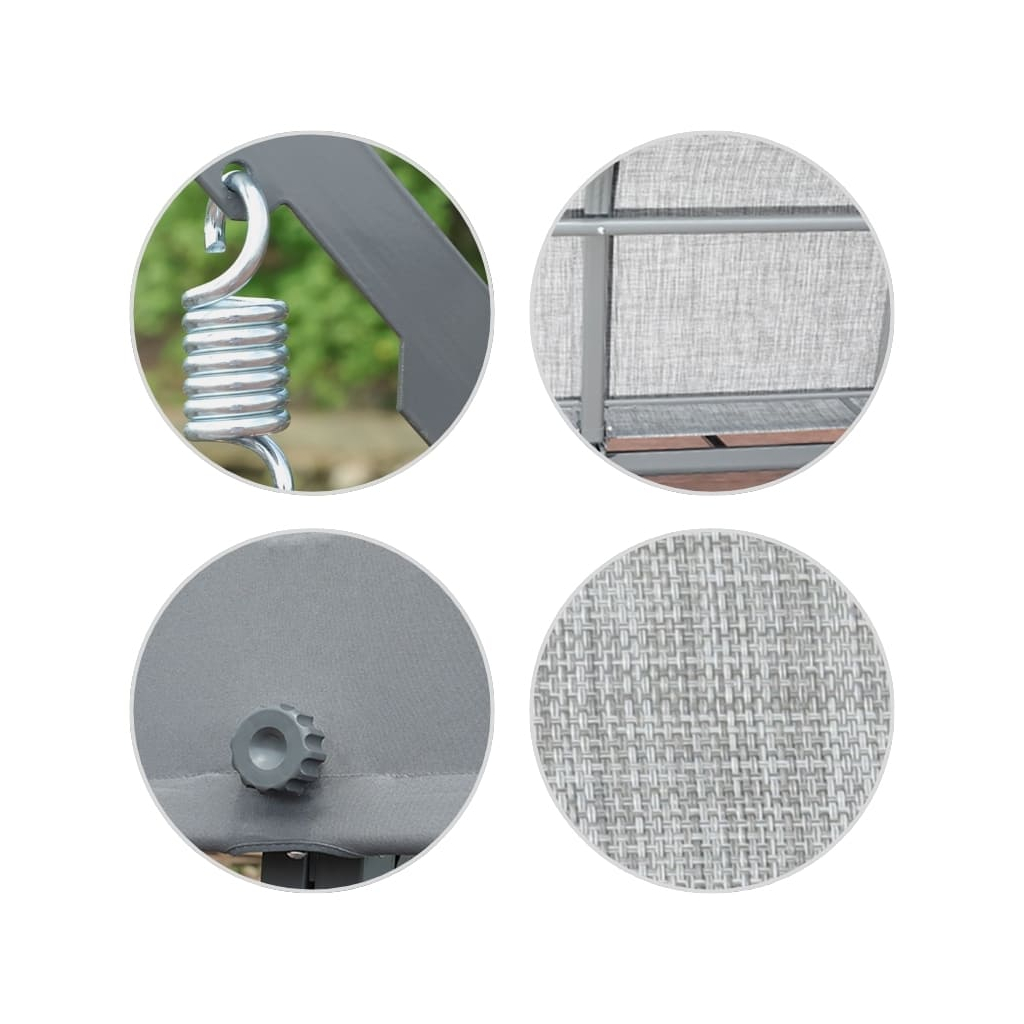 140 cm široká lavice je potažená textilenovou síťovinou, takže příjemně větrá a rychle schne – ideální do každého počasí. Lavice unese i 300 kg.