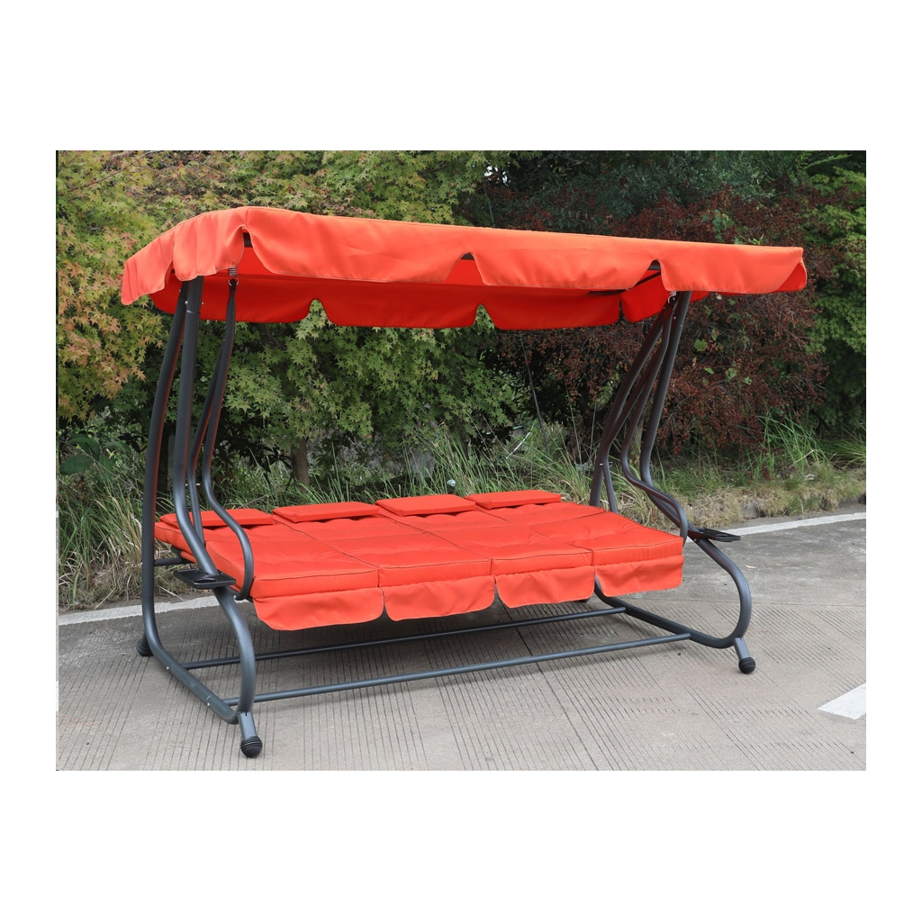 Sedák i opěrák houpačky je z 30mm trubek s komaxitovou vrstvou, na kterých je natažená jutovina. Komfort zajistí látkové čalounění vyplněné měkkou pěnou o tloušťce 80 mm. Lavice s drátěným roštem je zavěšená na konstrukci pomocí vinutých pružin.