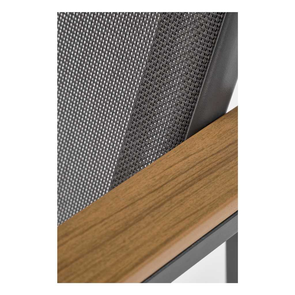 Konstrukce křesla je z černé práškované ocele, takže je dostatečně robustní a nevyžaduje zvláštní údržbu. Kontaktní plocha područek je z polypropylenu v barvě podobné dřevu.