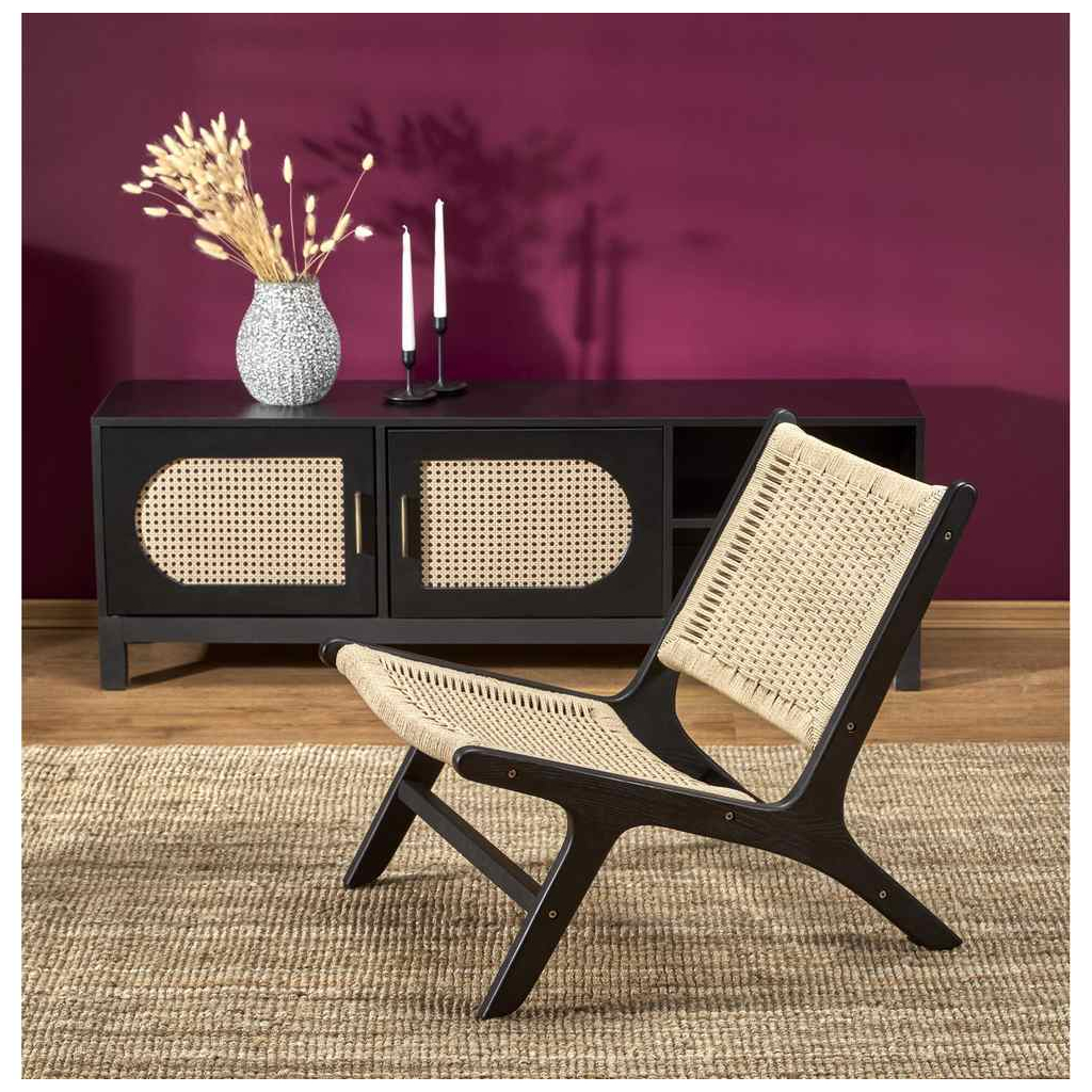 Na první pohled zaujme měkký výplet z vláken v přírodním odstínu, který najdete jak na sedáku, tak na opěráku zad. Nosnost křesla je 100 kg.