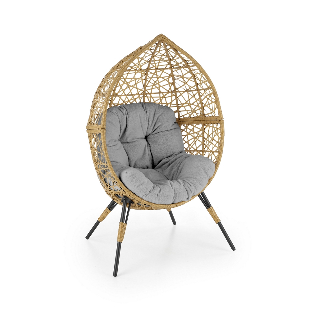 Proplétaná konstrukce z umělého ratanu odolává všem rozmarům počasí, nerozhází ho tak sluneční paprsky ani silný déšť. Stabilitu křeslu dodávají 4 nohy z práškované oceli.