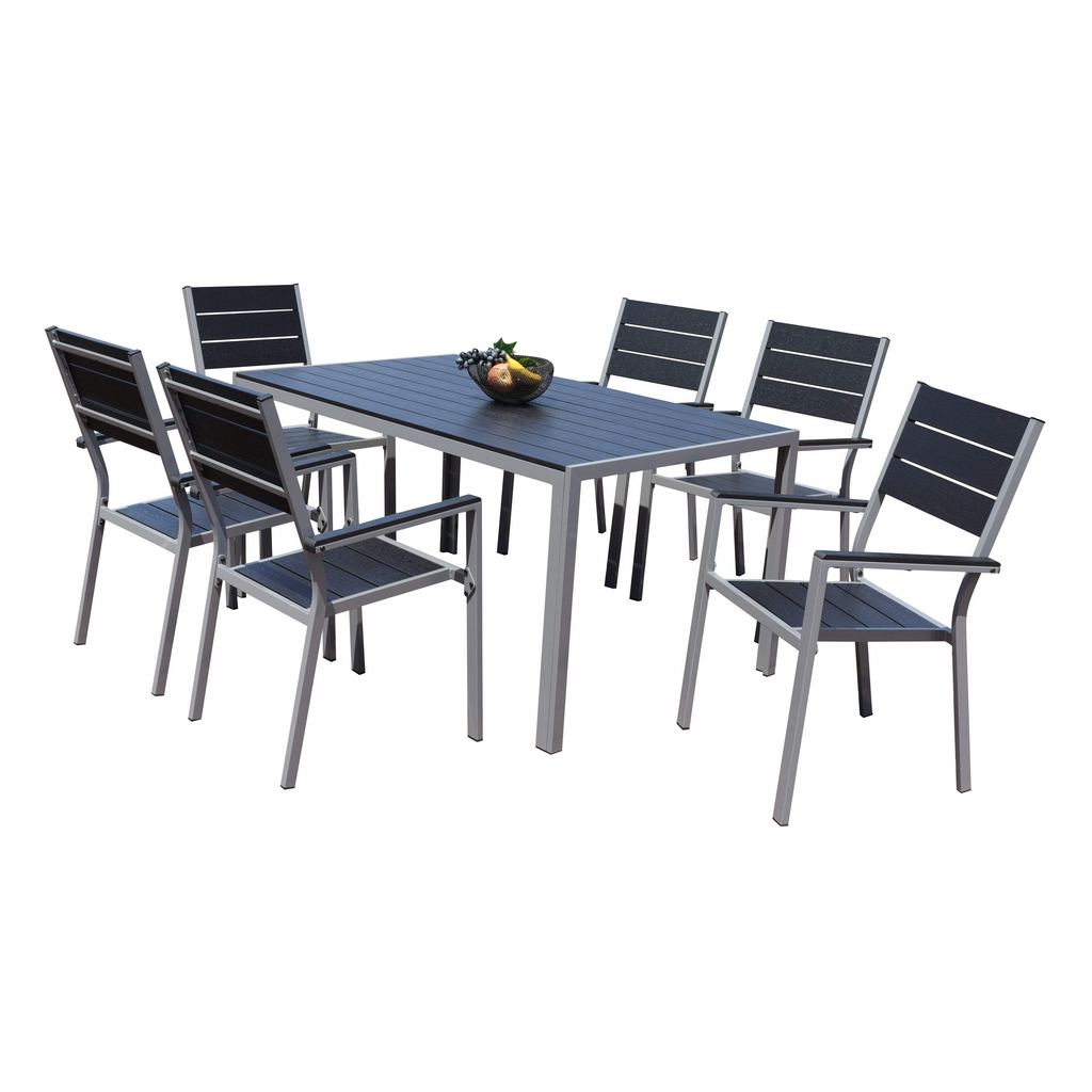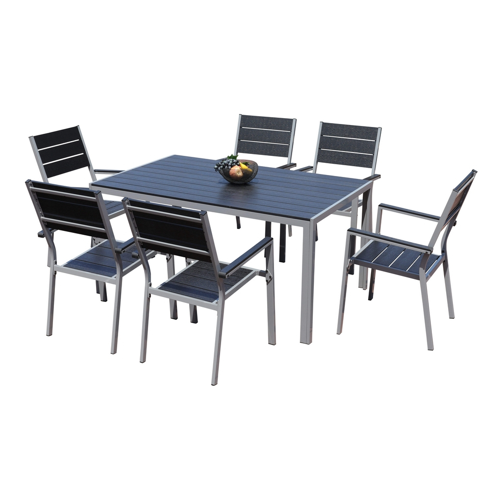 Zahradní sestava Fargo, obdélník - 6 míst, černá / šedá