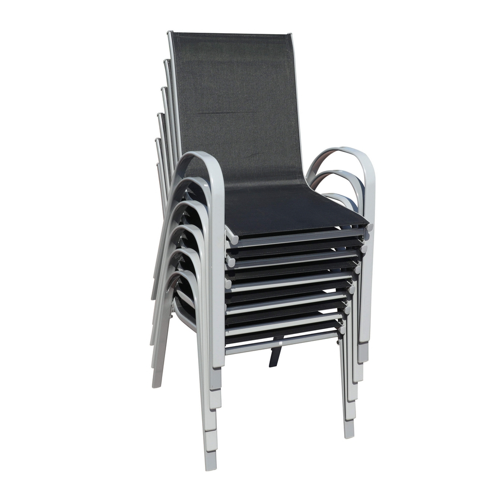 Kovovou konstrukci má i 6 židlí Romero. Jejich sedák i opěradlo jsou potažené síťovinou z umělých vláken, která příjemně větrá a rychle schne.