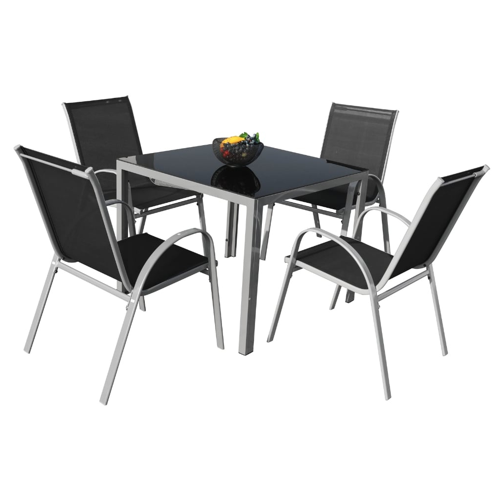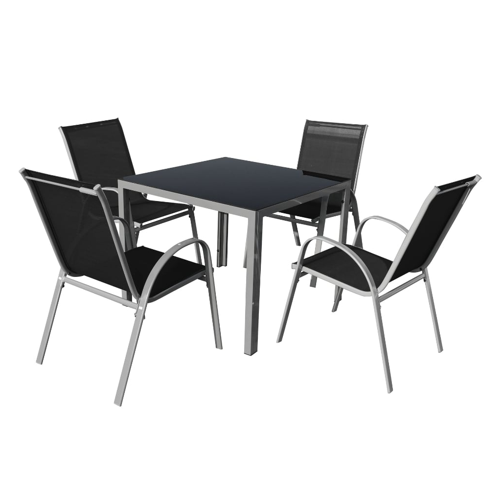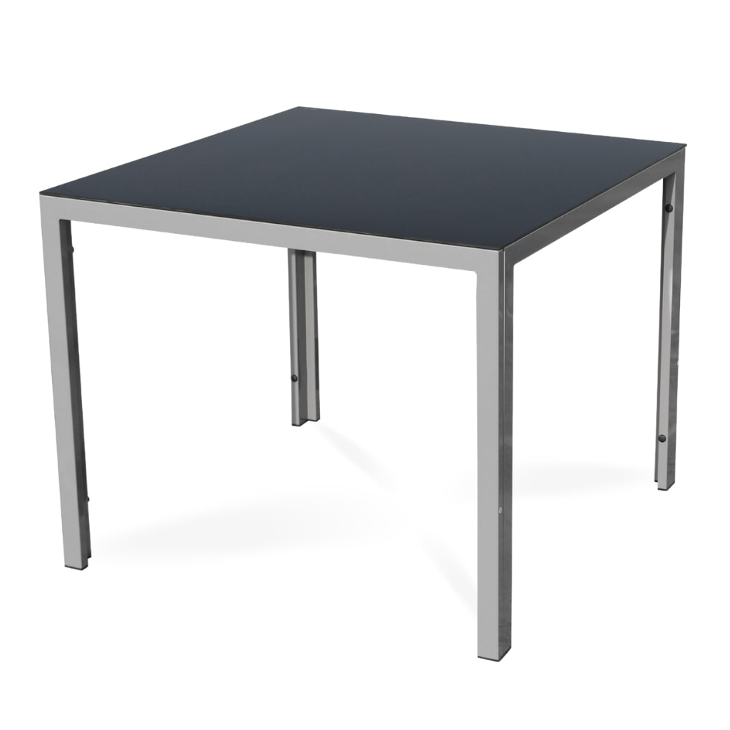Čtvercový stůl Fargo 2 se skládá z ocelové kostry a skleněné desky (5mm černé tvrzené sklo). Ta odolá vrtochům počasí a snadno se čistí, což při venkovním používání přijde vhod.