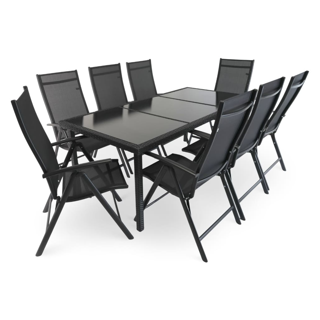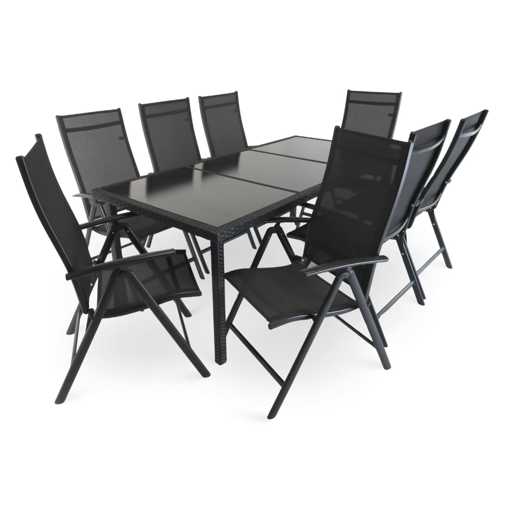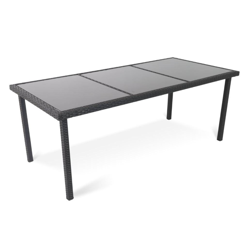 Konstrukce stolu je z černých kovových trubek a umělého ratanu. A u stolu 190×90cm desky z tvrzeného skla budete mít spoustu prostoru i na pořádnou oslavu!