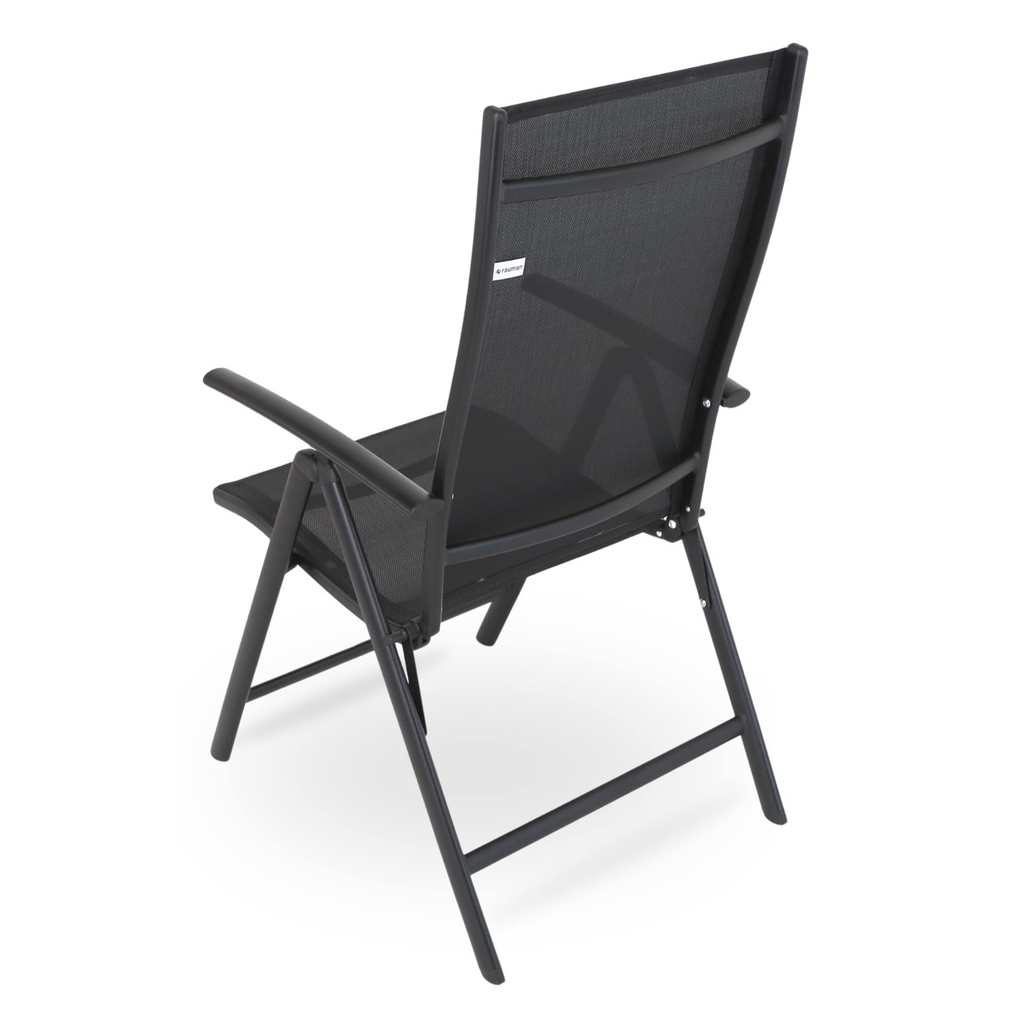Stůl doplňují polohovací židle, u kterých si vyberete hned z několika sklonů opěradla a na zimu je jednoduše složíte a schováte třeba do garáže.