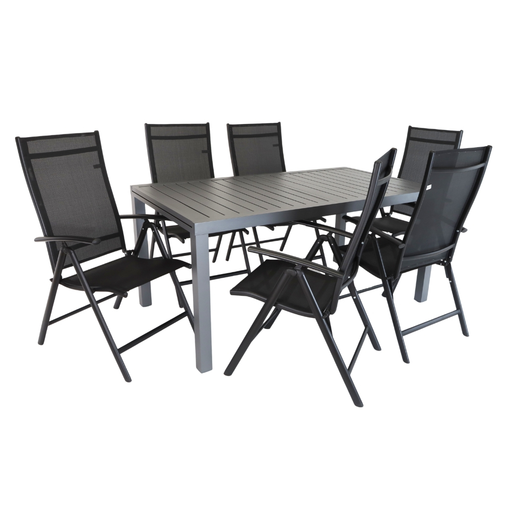Stůl doplňují polohovací židle, u kterých si vyberete hned z několika sklonů opěradla a na zimu je jednoduše složíte a schováte třeba do garáže.