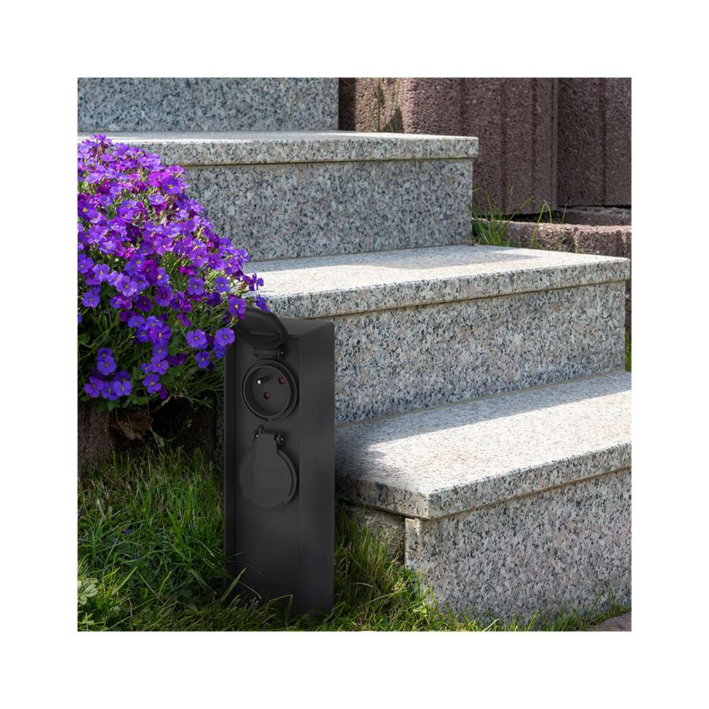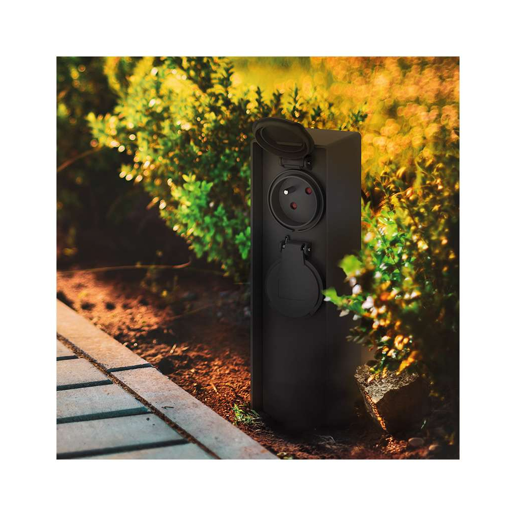 Díky krytí IP44 a samouzavíratelným krytkám zásuvek váš přístroj zůstane chráněný před prachem a vlhkostí i v nepříznivém počasí. Konstrukce ze stabilního plastu umožňuje dlouhodobé venkovní používání, přičemž sloupek disponuje dvěma zásuvkami s dětskými pojistkami pro zvýšenou bezpečnost.