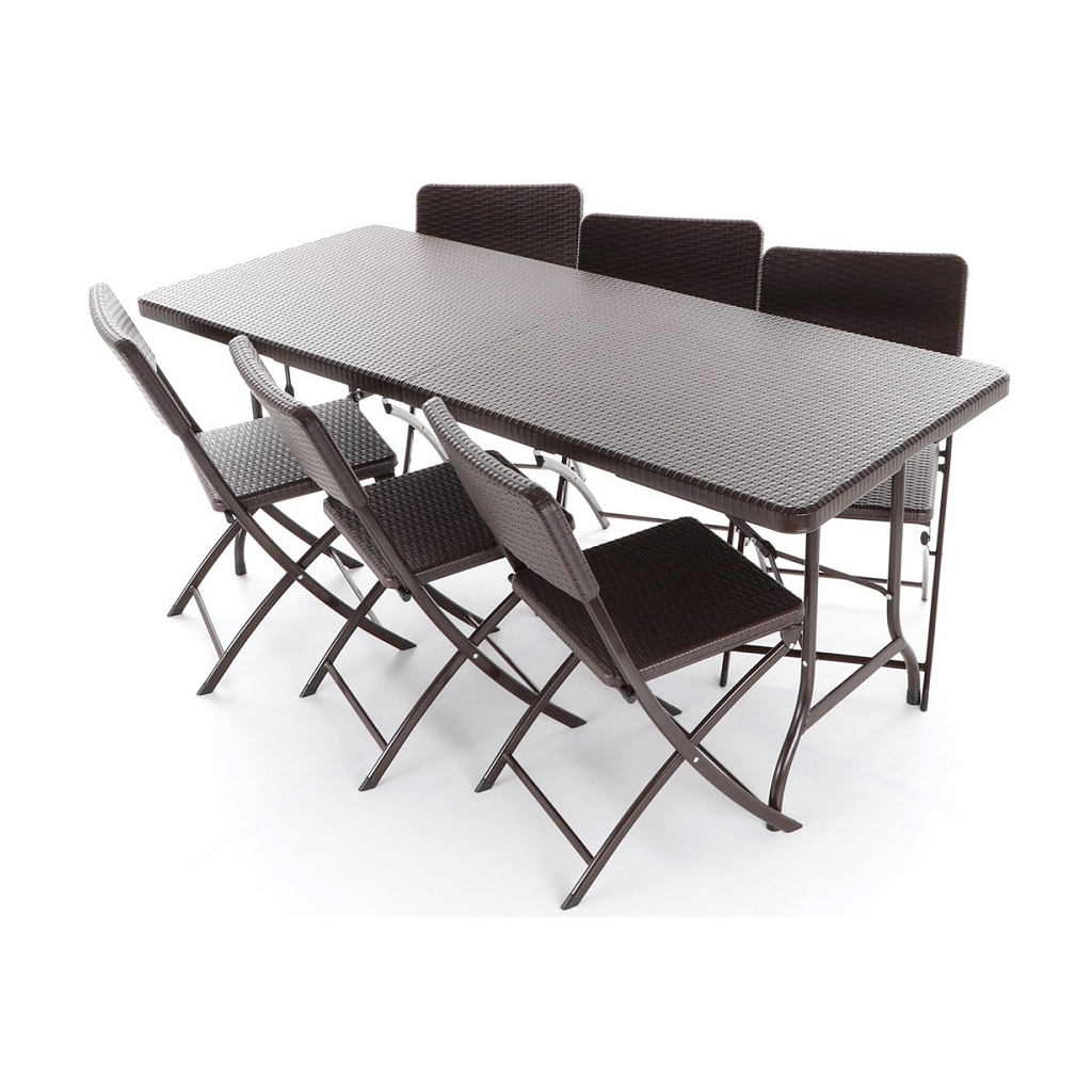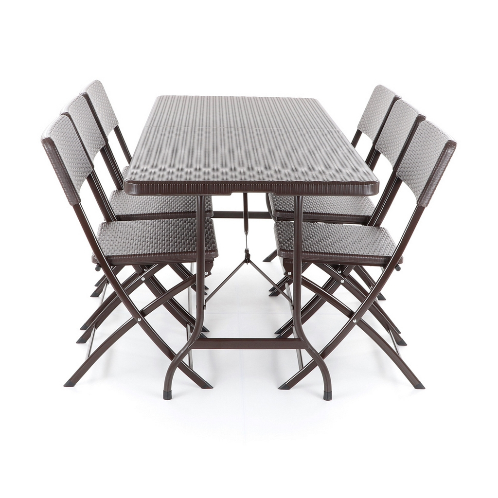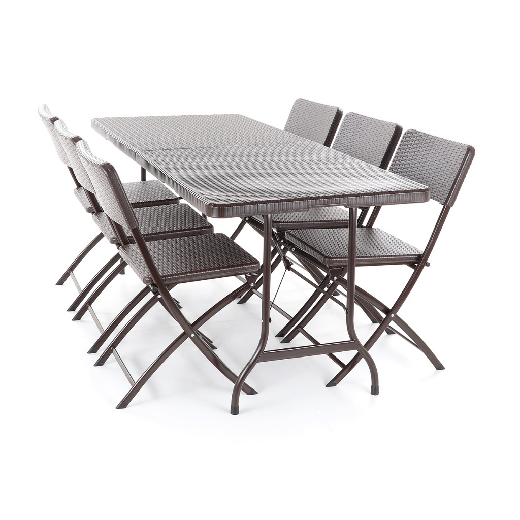 Zahradní sestava Dustin se skládá z 6 židlí a stolu a vytváří dohromady 6 míst k sezení. Využijete ji především na terasách, balkónech a v pergolových prostorech vaší zahrady či podniku.