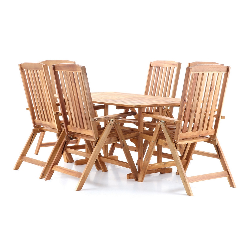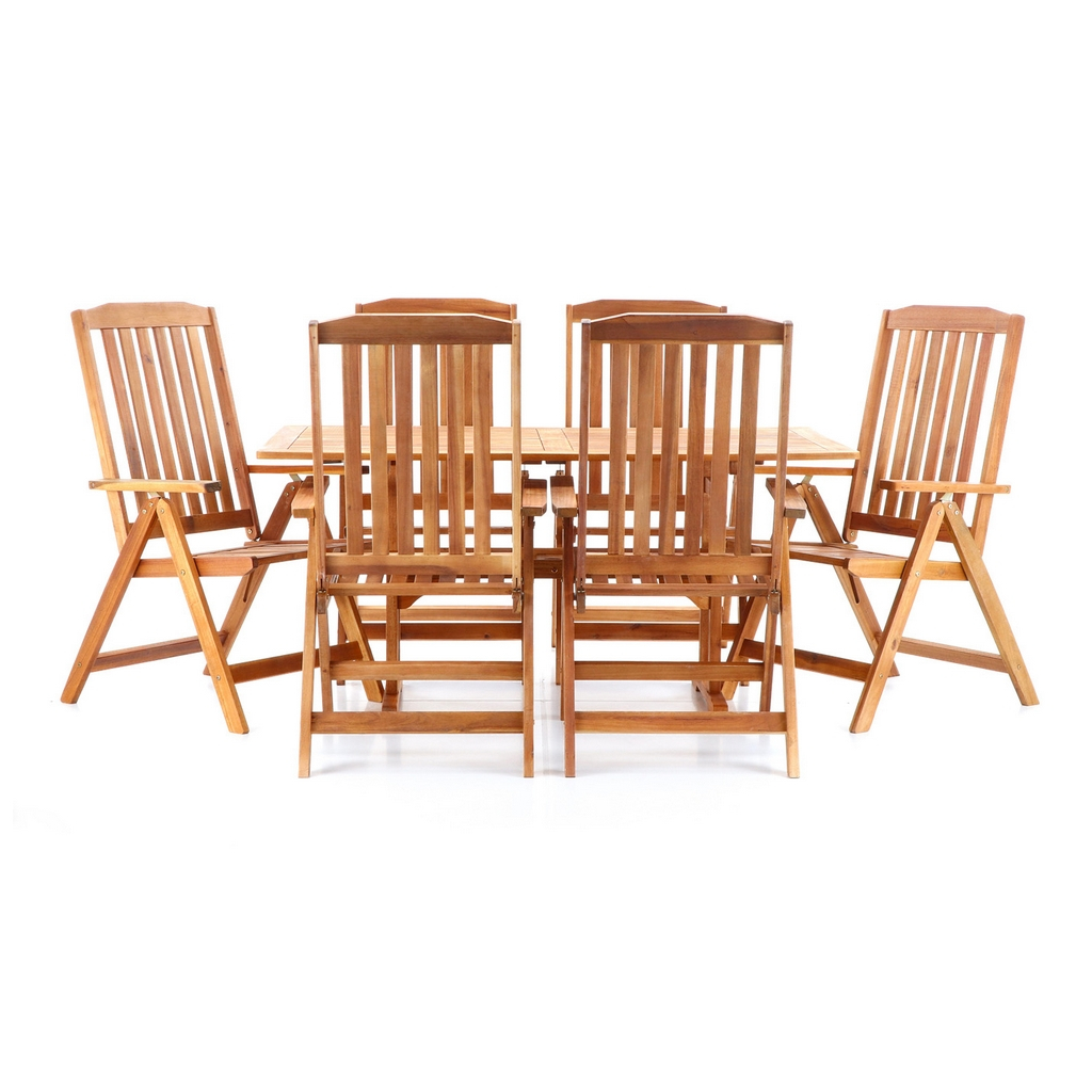 Zahradní sestava Kobe se skládá ze 6 polohovatelných skládacích židlí a stolu a vytváří dohromady 6 míst k sezení. Využijete ji především na terasách, balkónech a v pergolových prostorech vaší zahrady či podniku.