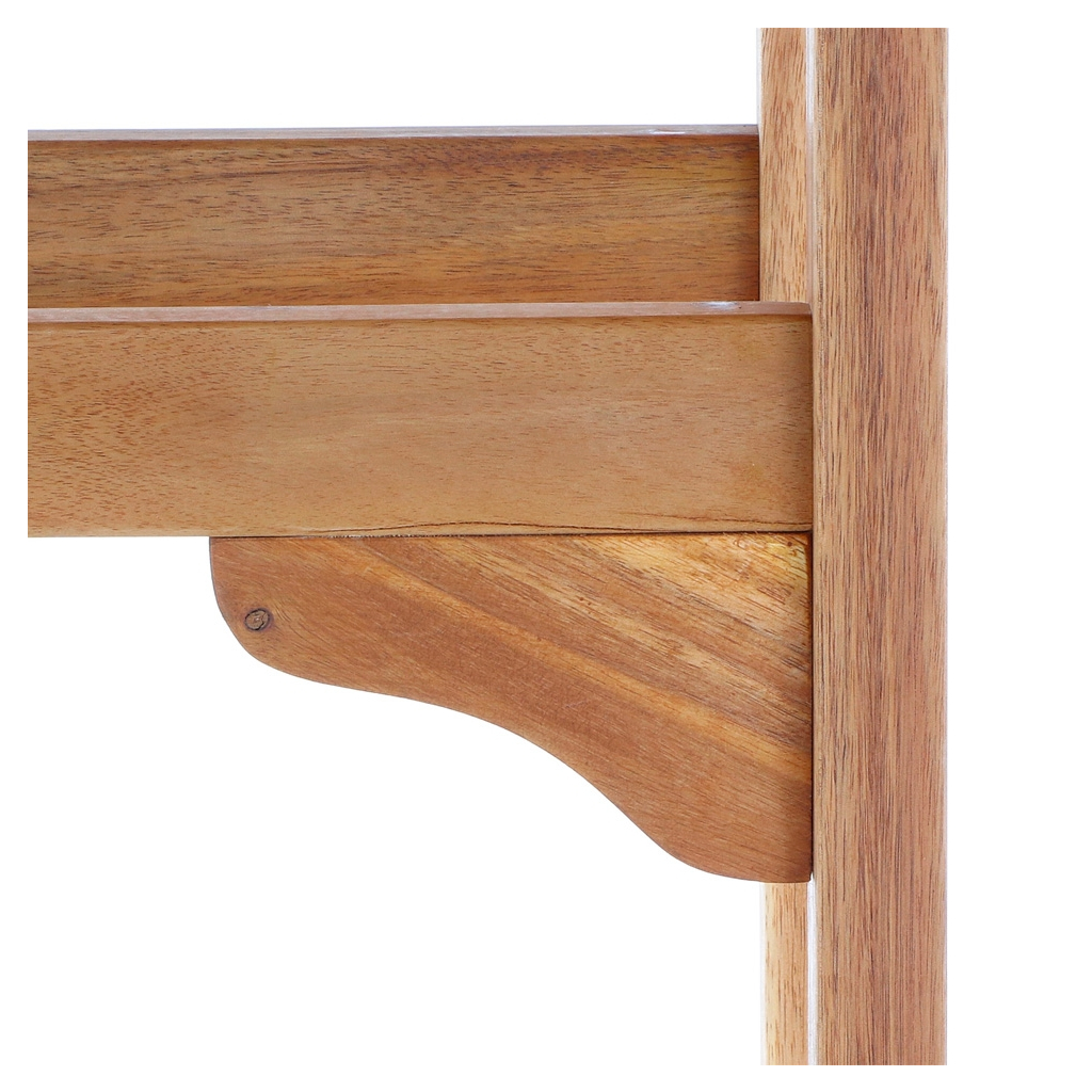 Konstrukce sestavy je vyrobená z pevného akáciového dřeva. Je vhodné k vnitřnímu využití, případně v krytém prostoru v exteriéru. Pro použití ve venkovním nekrytém prostoru je nutná impregnace nábytku.
