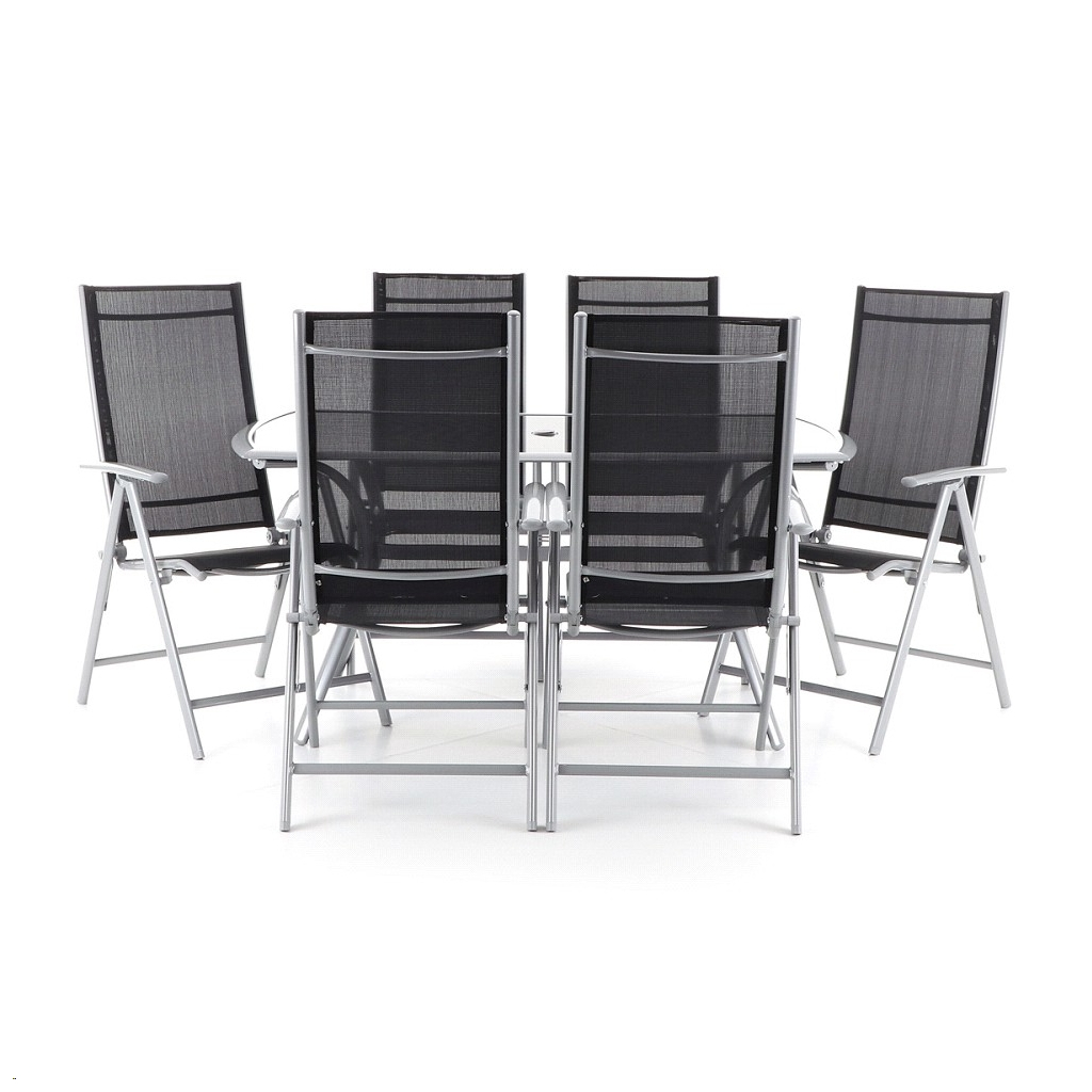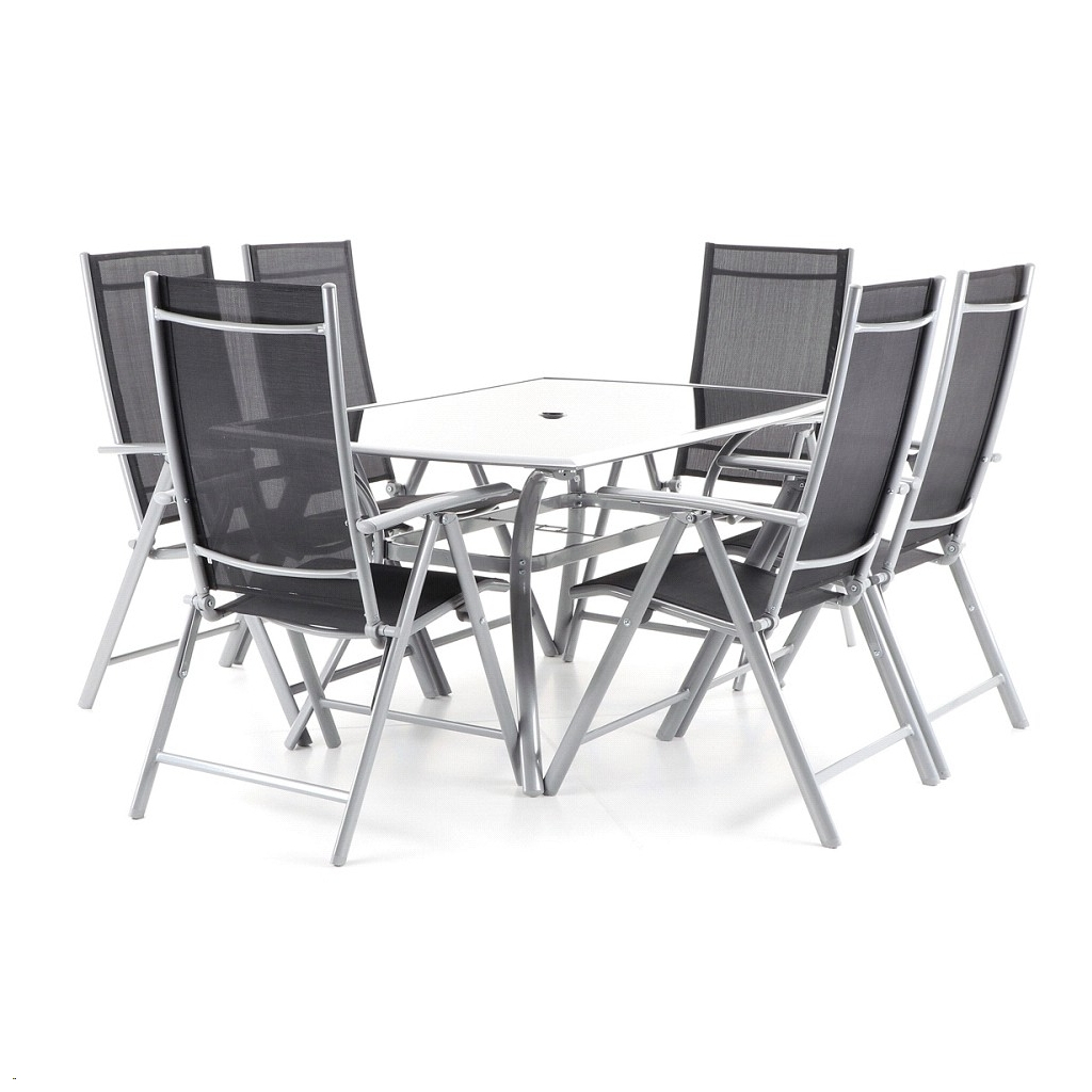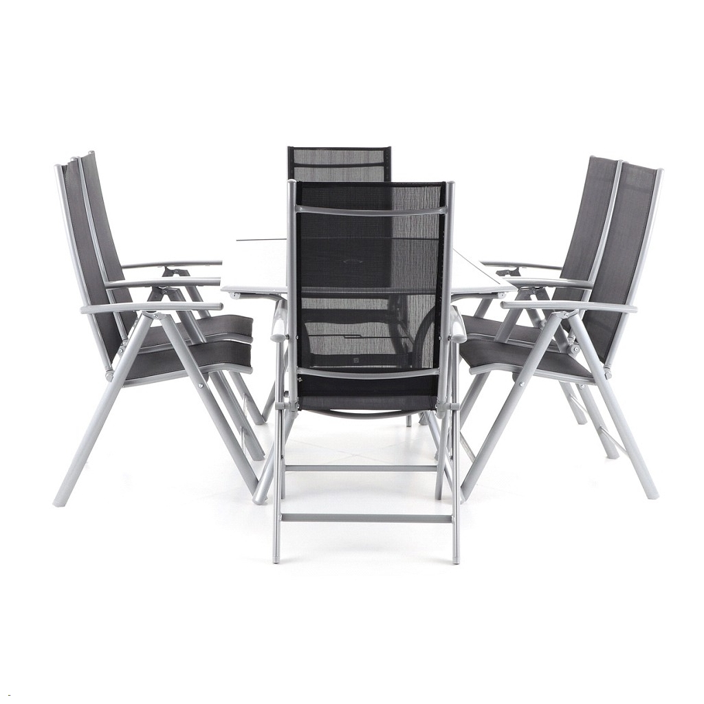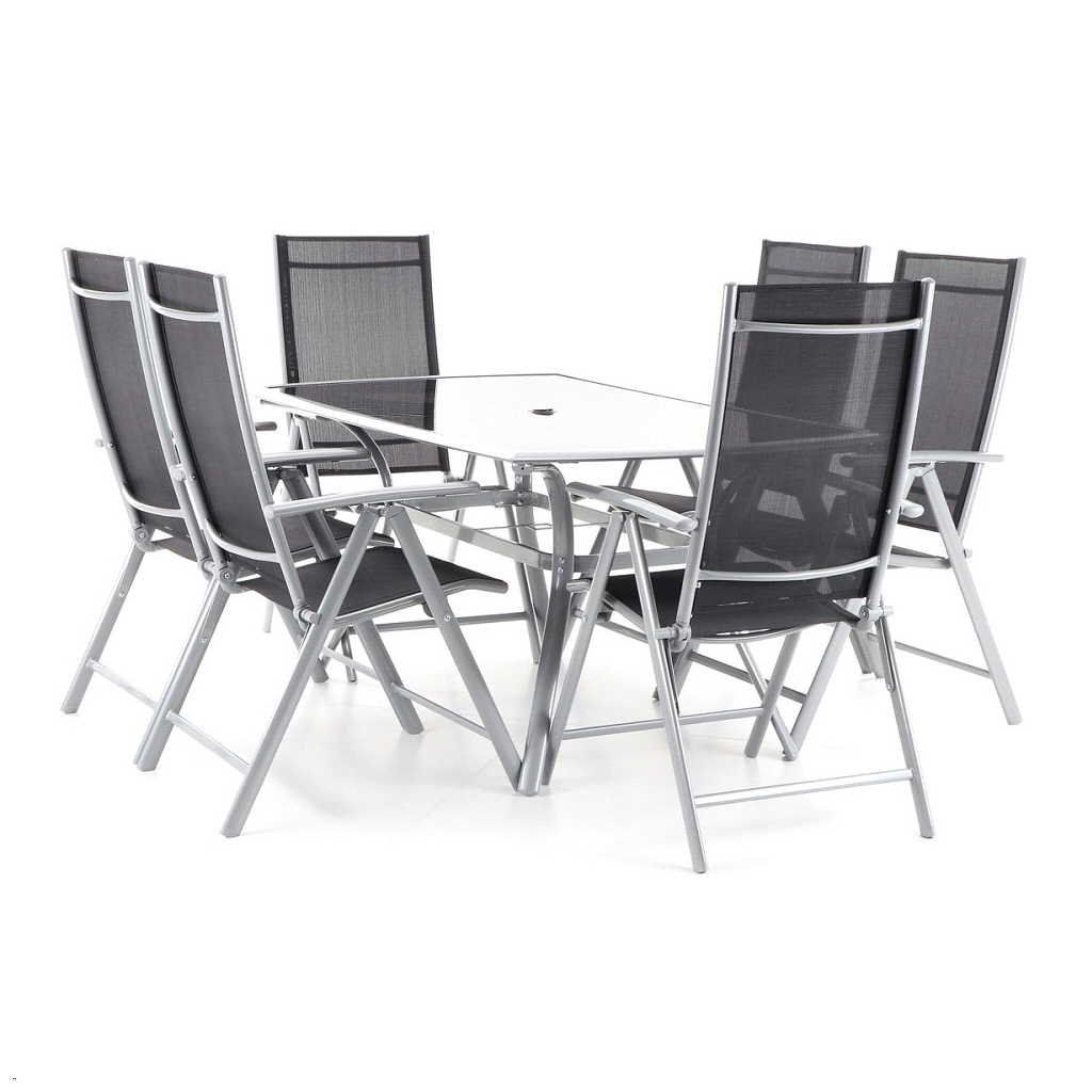 Zahradní sestava Nori se skládá ze stolu a 6 skládacích a polohovacích židlí. Využijete ji především na terasách, balkónech a v pergolových prostorech vaší zahrady či podniku.