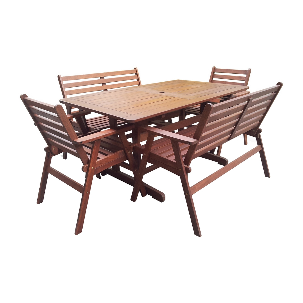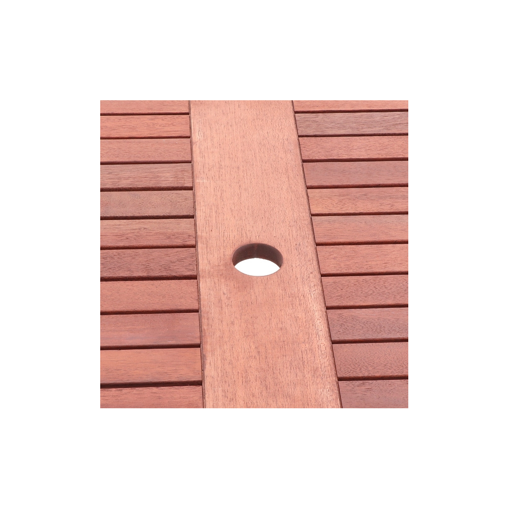 Konstrukce sestavy je vyrobená z pevného exotického dřeva meranti. Doporučujeme tento zahradní nábytek nevystavovat trvale vlhkému prostředí bez vhodné impregnace.