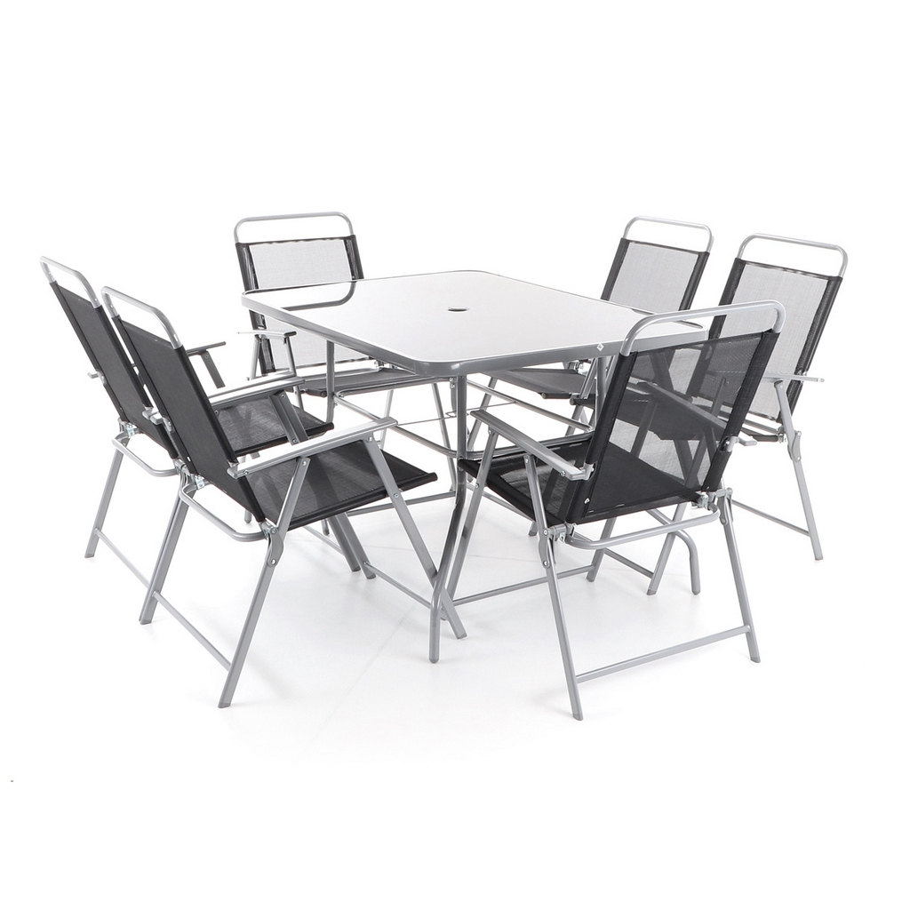 Zahradní sestava Vero se skládá ze stolu a 6 skládacích židlí. Využijete ji především na terasách, balkónech a v pergolových prostorech vaší zahrady či podniku.
