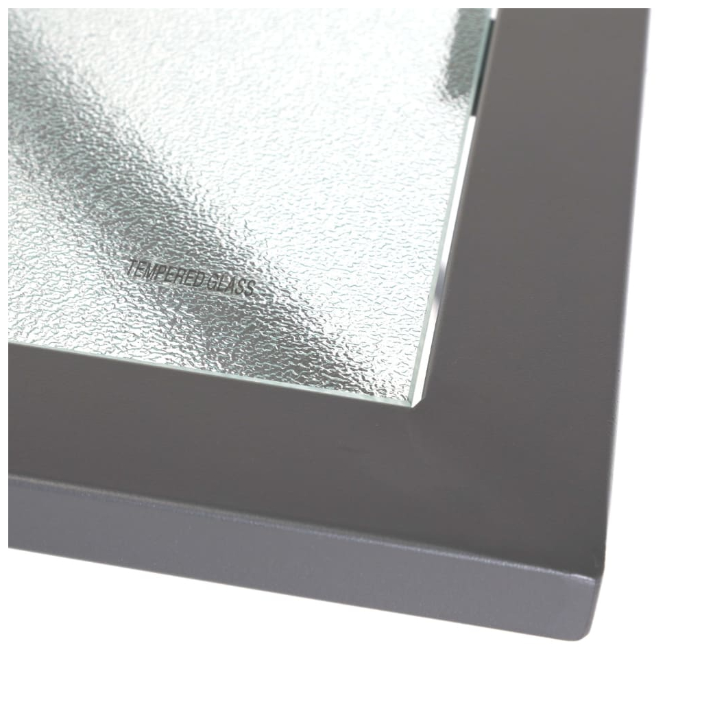 Samotná deska je pak z tvrzeného skla. To je prakticky imunní vůči dešti i slunci a snadno se čistí – stačí přetřít vlhkým hadříkem a posezení je jako nové!