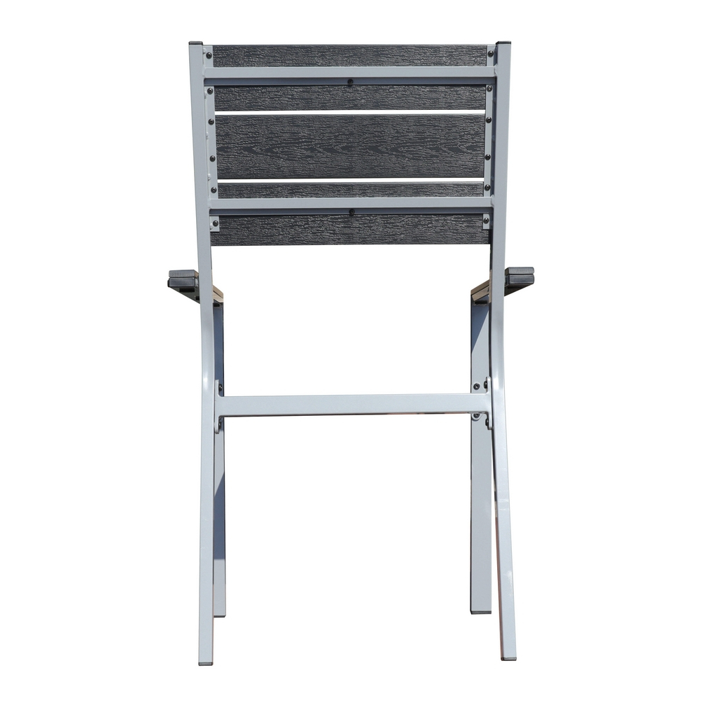 Nohy a konstrukci tvoří hliníkové trubky o profilech 40 × 20 a 30 × 20 mm s práškovanou úpravou, sedák a opěrák jsou pak z odolného plastu imitujícího dřevěné desky. Tato kombinace materiálů nevyžaduje zvláštní údržbu a díky hmotnosti cca 5 kg se s židlemi snadno manipuluje.
