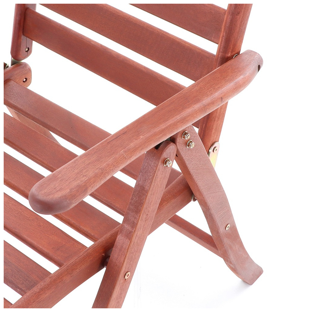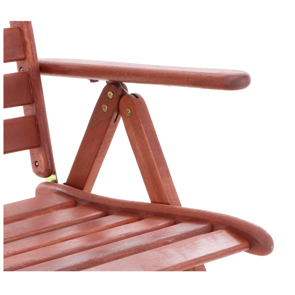 Konstrukce židle je vyrobená z pevného exotického dřeva meranti. Doporučujeme tento zahradní nábytek nevystavovat trvale vlhkému prostředí bez vhodné impregnace.