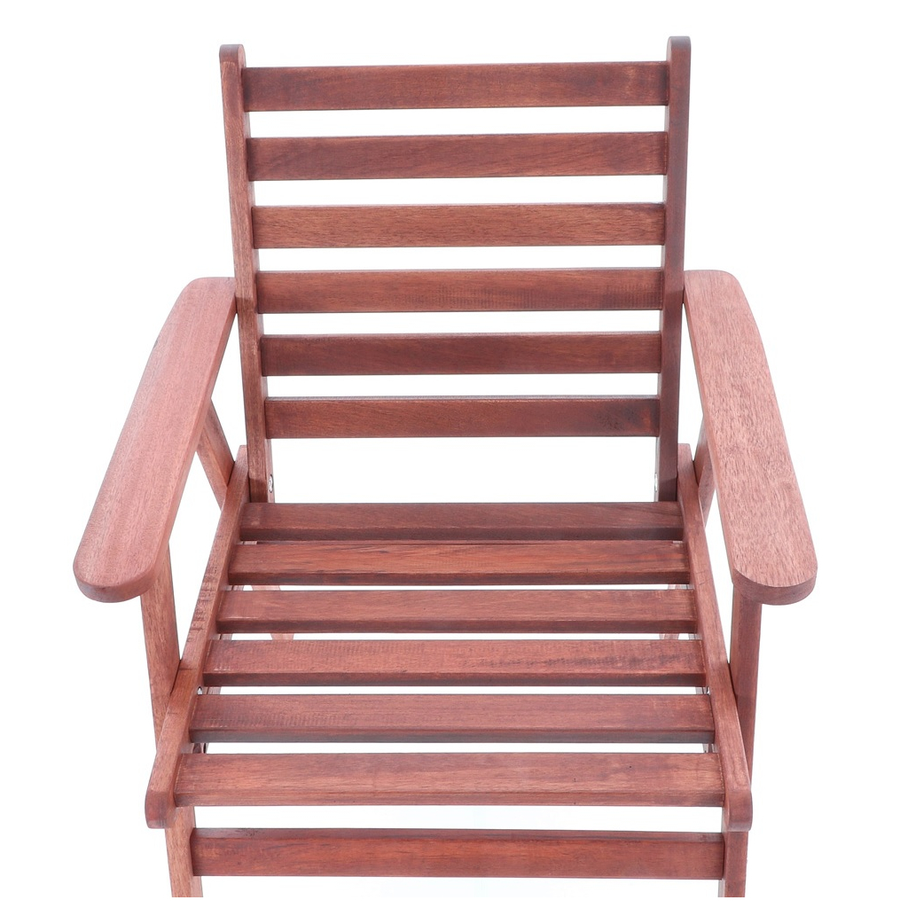 Konstrukce židle je vyrobená z pevného exotického dřeva meranti. Doporučujeme tento zahradní nábytek nevystavovat trvale vlhkému prostředí bez vhodné impregnace.