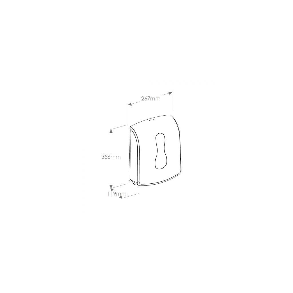 Jeho konstrukce je vyrobená z pevného ABS plastu a disponuje uzamykatelným krytem. Nemusíte se tedy obávat případné krádeže vloženého spotřebního materiálu. Výhodou je také průhledné okénko pro kontrolu stavu zásoby papírových ručníků uvnitř zásobníku.