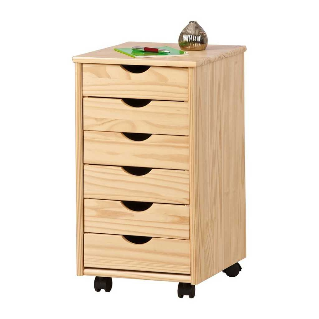 Kontejner je vyrobený z borovicového masivu s průhledným lakem. Kromě 6 zásuvek oceníte také kolečka, díky kterým jej snadno přemístíte třeba při uklízení.