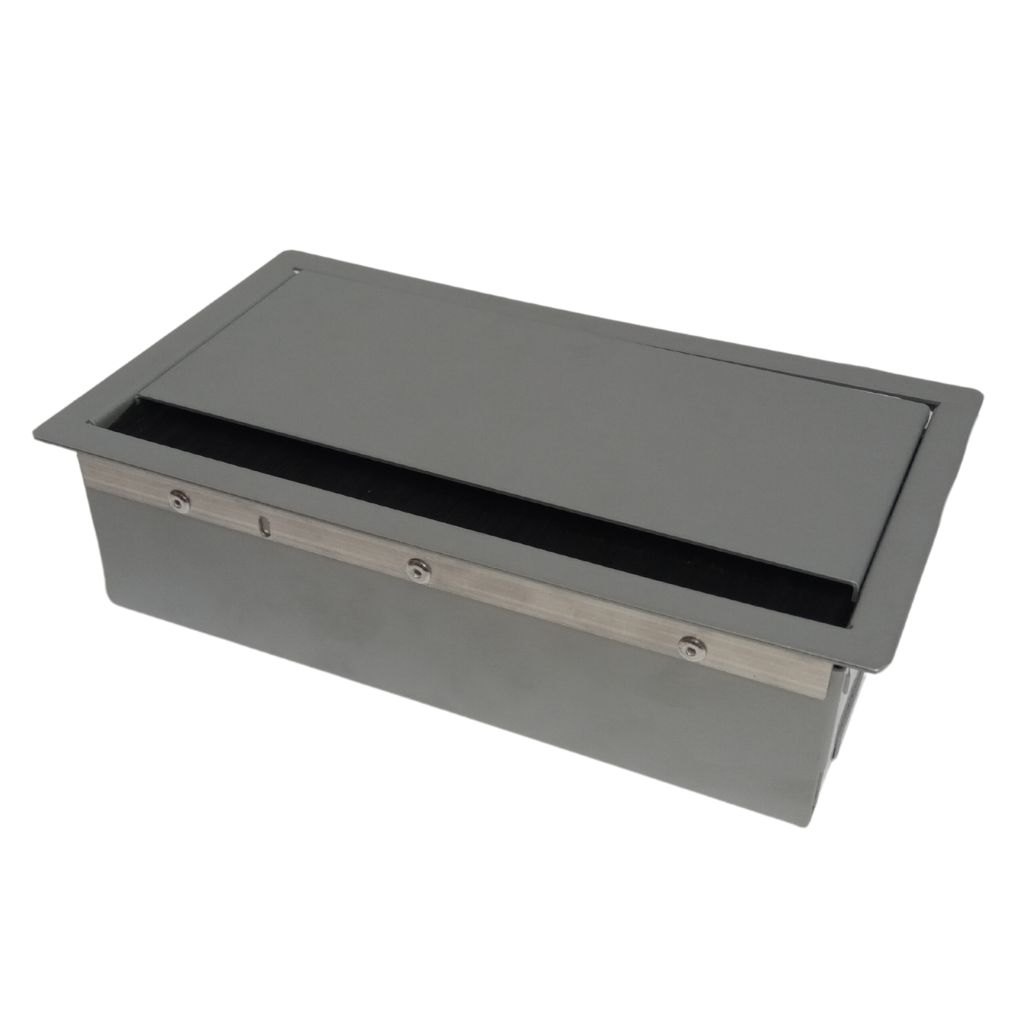Zásuvkový panel má elegantní kovovou konstrukci s výklopným mediaportem. Ten vám nabídne 3 klasické 230V zásuvky a konektor RJ45 pro ethernetový kabel.