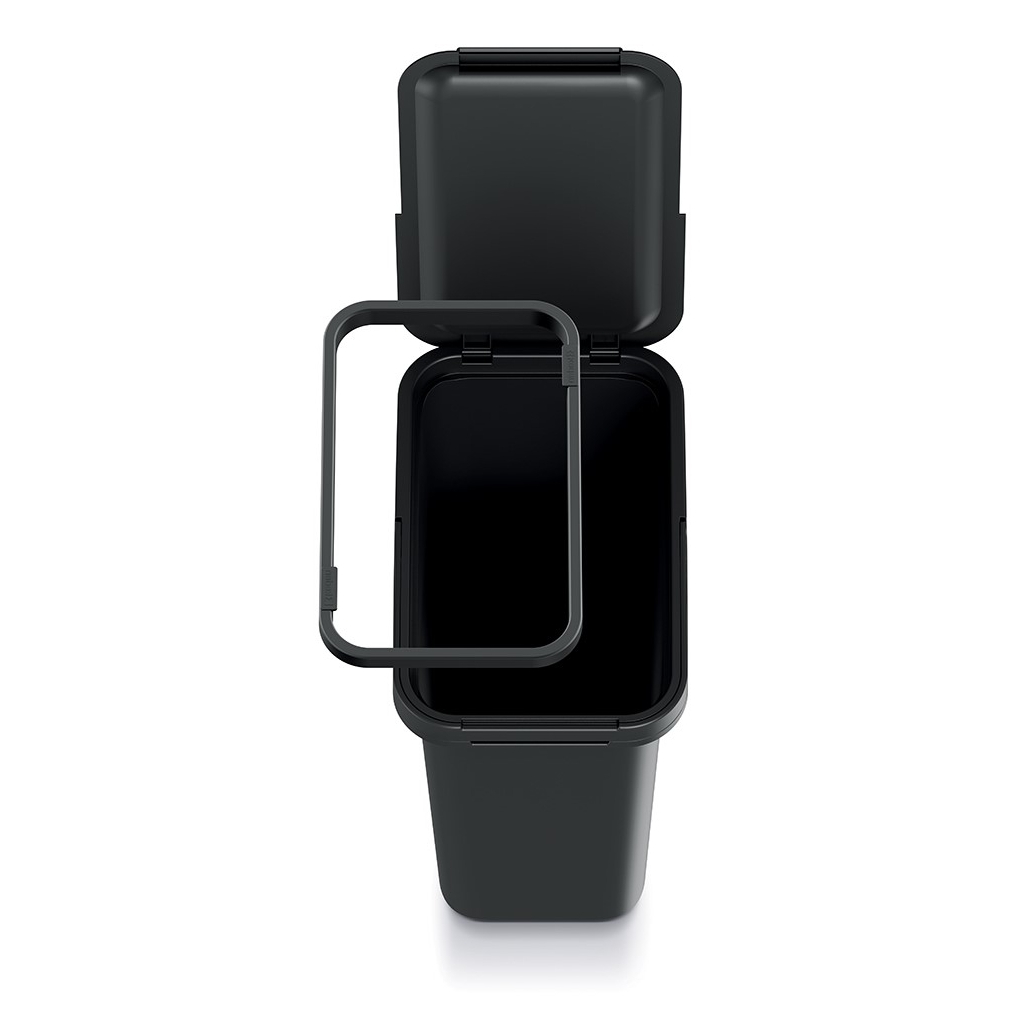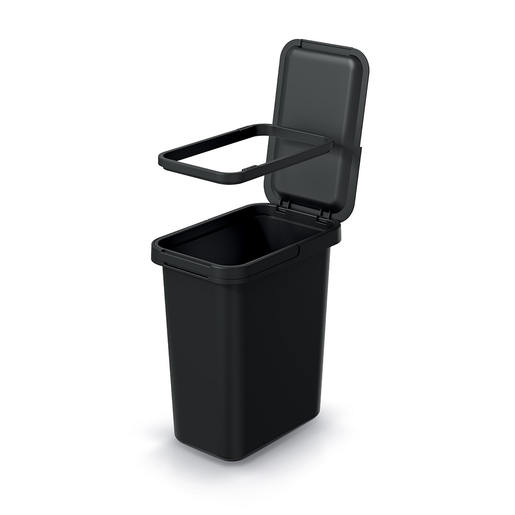 Tento kompaktní odpadkový koš vám skvěle poslouží v menším interiéru. Pyšní se víkem, které zamezí šíření případných pachů, a držákem pytlů, díky kterému už se vám nestane, že by vhozený odpadek vtáhnul sáček dovnitř.