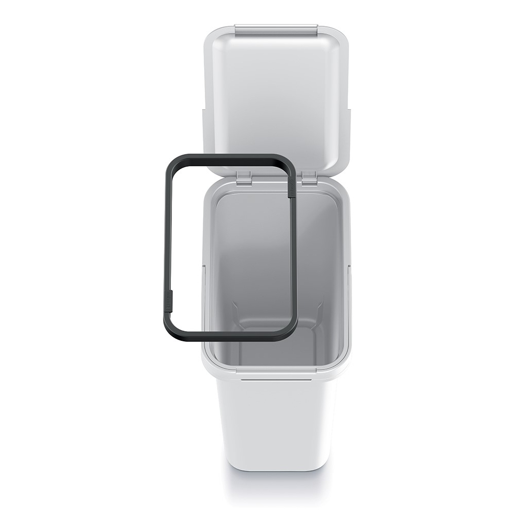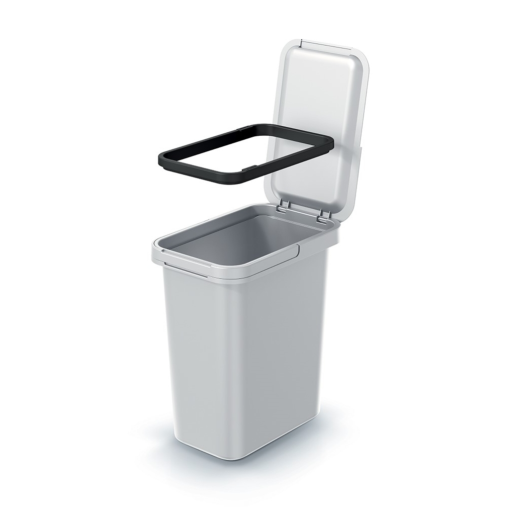 Tento kompaktní odpadkový koš vám skvěle poslouží v menším interiéru. Pyšní se víkem, které zamezí šíření případných pachů, a držákem pytlů, díky kterému už se vám nestane, že by vhozený odpadek vtáhnul sáček dovnitř.