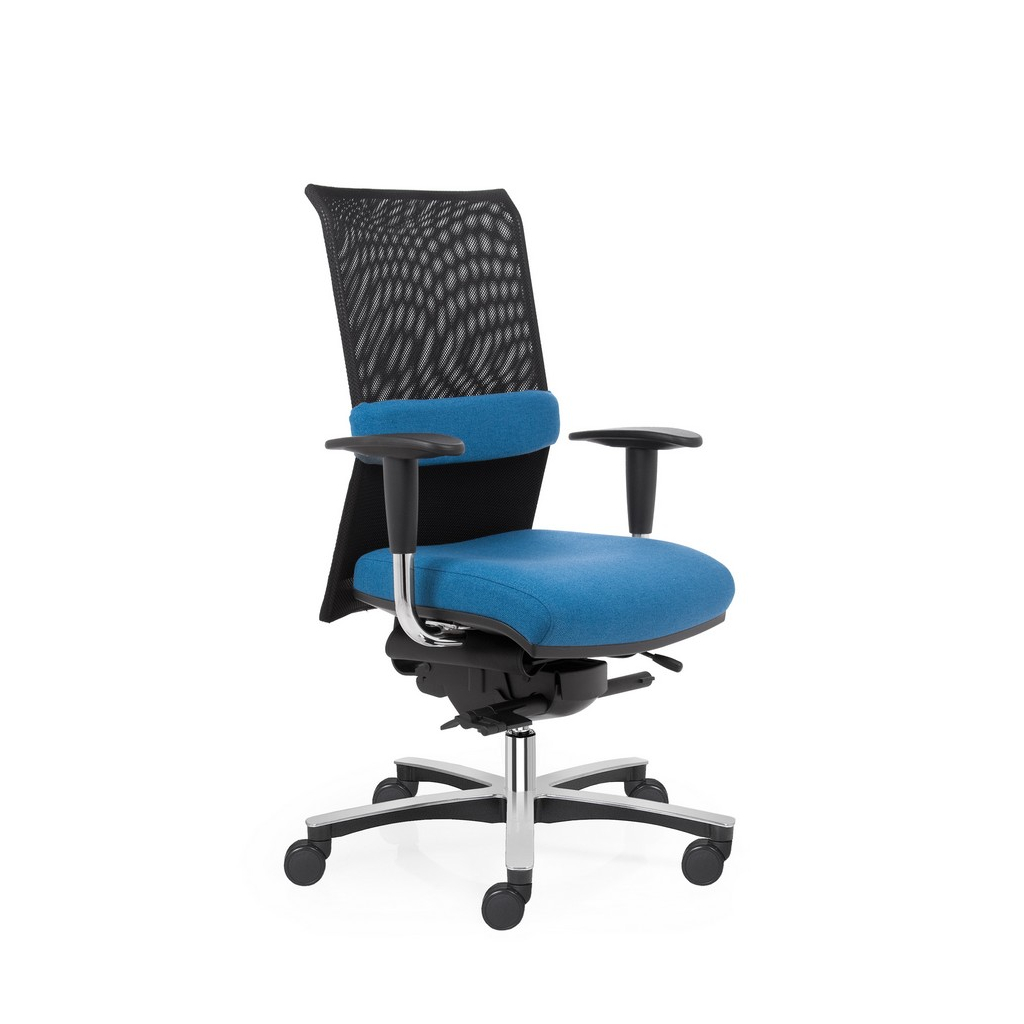 Židle je vybavená zesíleným látkovým sedákem a opěrákem ze síťoviny. Sedák je velice pohodlný na sezení díky pěnové výplni a příjemné potahové látce. Navíc disponuje systémem odpružení pomocí taštičkových pružin a paměťové pěny s regulací tuhosti mechanismu. Nespornou předností síťovaného opěráku je jeho vzdušnost a prodyšnost, kterou oceníte zejména během horkých letních dní.