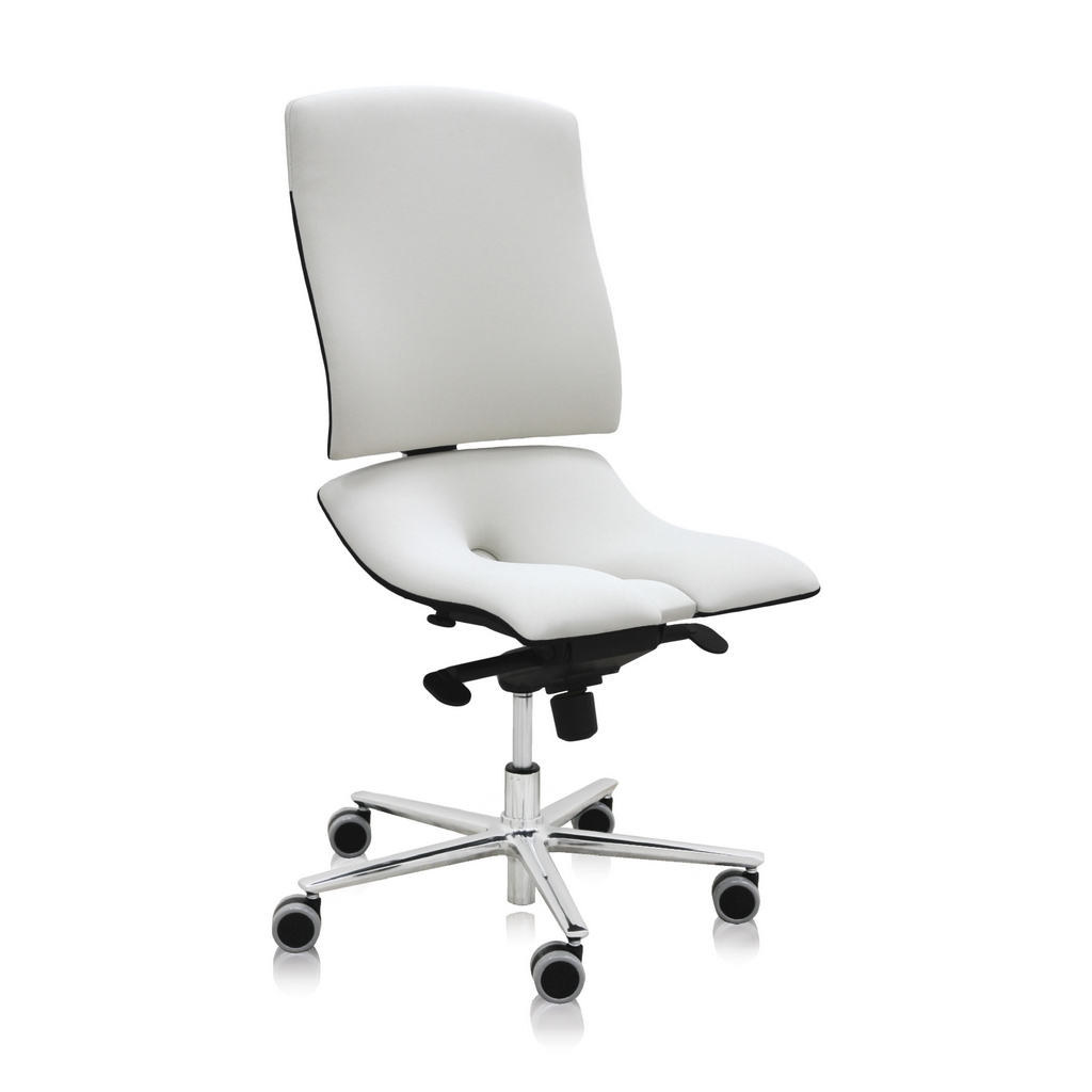 Prohlubeň ve středové části sedáku eliminuje veškerý tlak na kritické body těla, které jsou naopak při sezení na běžné kancelářské židli namáhány. Svým tvarem sedák napomáhá udržovat pánev ve správné poloze, zabezpečuje vzpřímené držení těla a nezatěžuje krční svalstvo. Model Steel Standard poskytuje úlevu od existujících sedacích problémů a zároveň funguje jako skvělý nástroj pro prevenci vzniku nových zdravotních neduhů. Dlouhodobé sezení v kanceláři se tak zase stane příjemnou a nevyčerpávající činností.