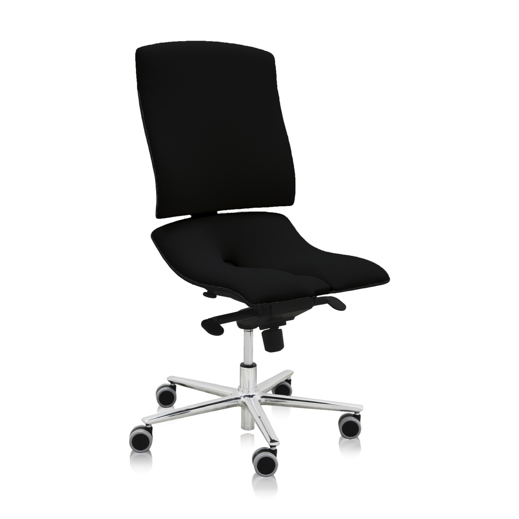 Prohlubeň ve středové části sedáku eliminuje veškerý tlak na kritické body těla, které jsou naopak při sezení na běžné kancelářské židli namáhány. Svým tvarem sedák napomáhá udržovat pánev ve správné poloze, zabezpečuje vzpřímené držení těla a nezatěžuje krční svalstvo. Model Steel Standard poskytuje úlevu od existujících sedacích problémů a zároveň funguje jako skvělý nástroj pro prevenci vzniku nových zdravotních neduhů. Dlouhodobé sezení v kanceláři se tak zase stane příjemnou a nevyčerpávající činností.